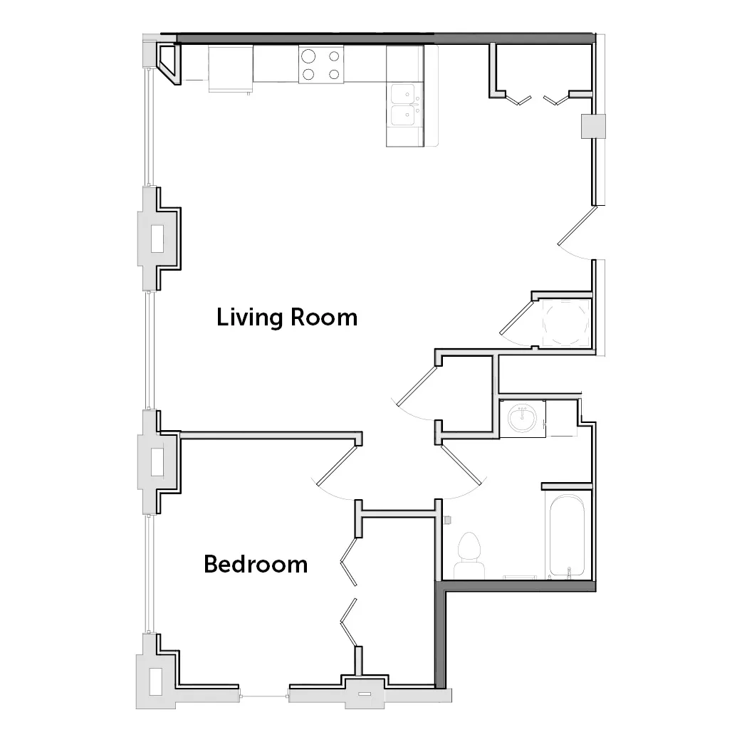 This spacious, one-bedroom home offers a full kitchen with energy-efficient appliances, an open living area and historic charm.
