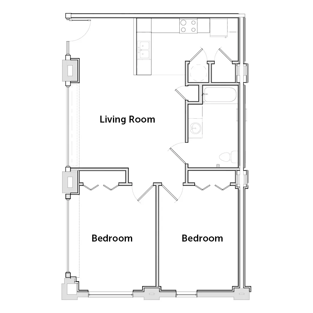 This spacious, two-bedroom home offers a full kitchen with energy-efficient appliances, an open living area and historic charm.