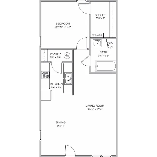 This spacious, one-bedroom home offers a full kitchen with energy-efficient appliances, an open living area and carpeted bedrooms.
