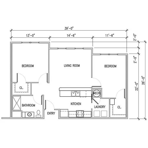 This spacious, two-bedroom home offers a full kitchen with energy-efficient appliances, an open living area and carpeted bedrooms.