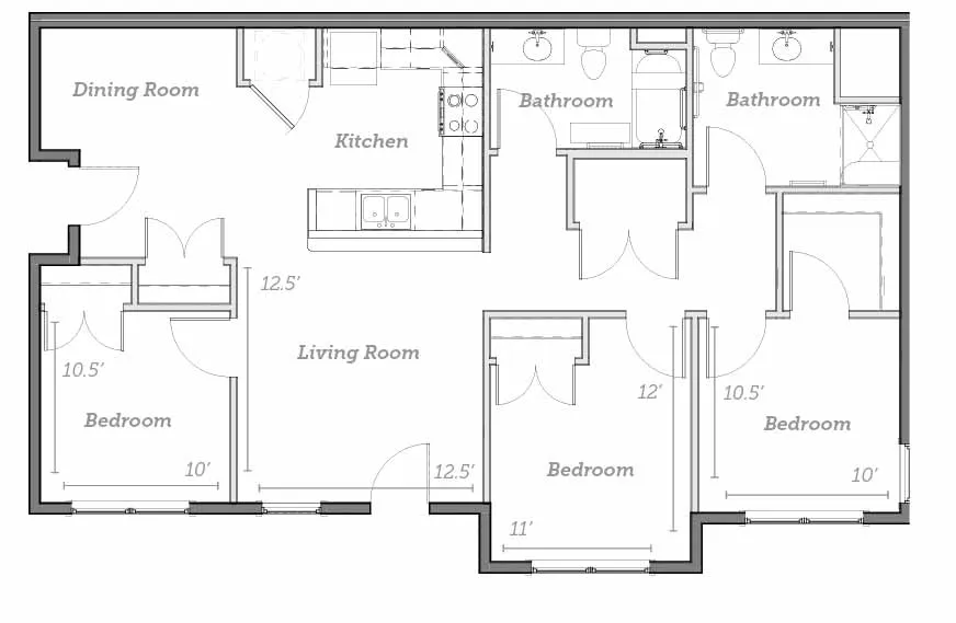 This spacious, three-bedroom home offers a full kitchen with energy-efficient appliances, an open living area and carpeted bedrooms.