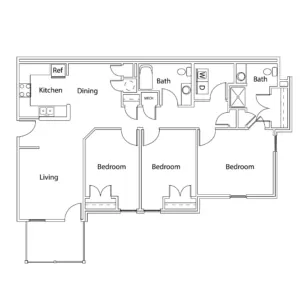This spacious, three-bedroom home offers a full kitchen with energy-efficient appliances, an open living area and carpeted bedrooms.