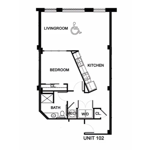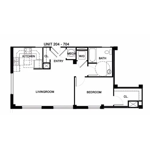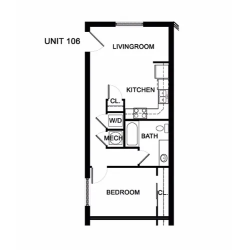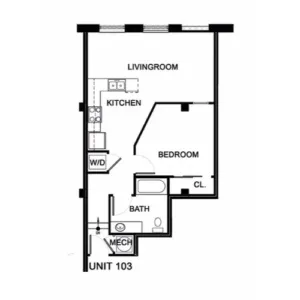This spacious, one-bedroom home offers a full kitchen with energy-efficient appliances, an open living area and historic charm.