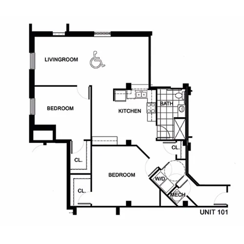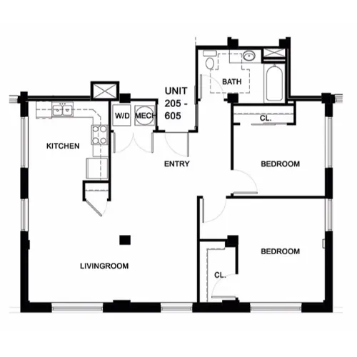 This spacious, two-bedroom home offers a full kitchen with energy-efficient appliances, an open living area and historic charm.