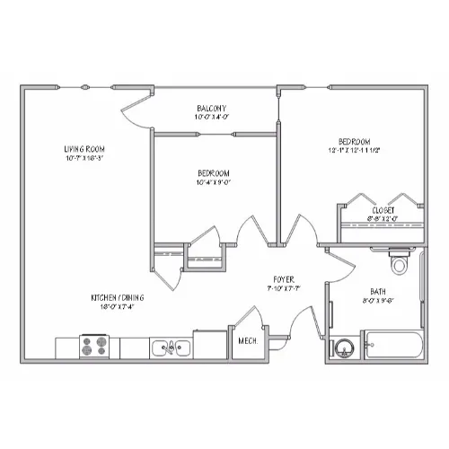 This spacious, two-bedroom home offers a full kitchen with energy-efficient appliances, an open living area and carpeted bedrooms.
