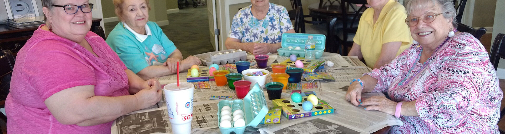 Residents at Wyndham Park in St. Peters, Missouri, gathered in their Community Room to decorate and dye eggs for Easter!