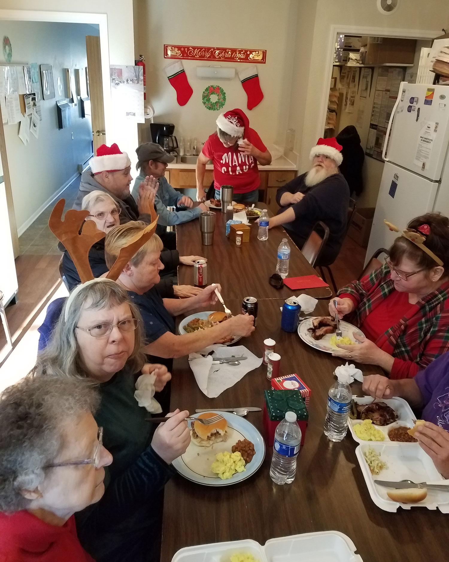 At the annual Ironton Estates Christmas party, residents enjoyed a gift exchange and a dinner of smoked meats, sides and desserts.
