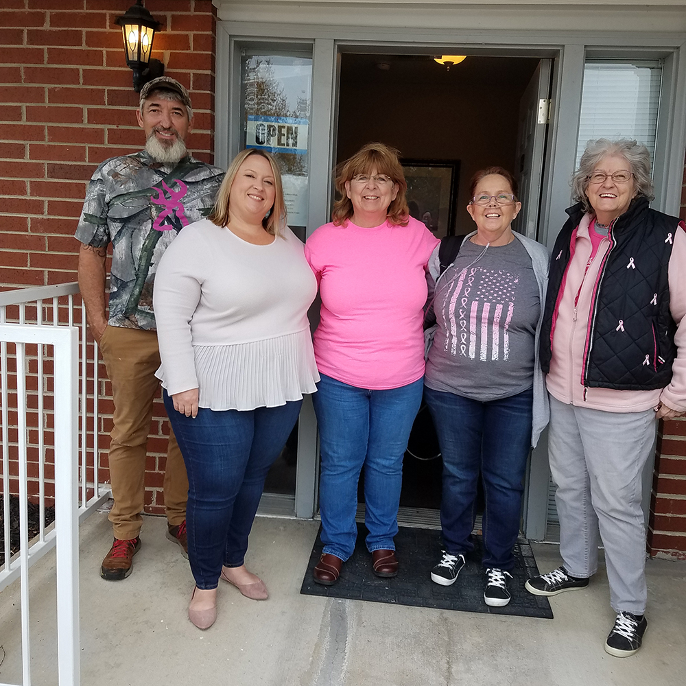 The following Twin City Villa residents and employees participated in a Pink Out Day to help raise money in support of breast cancer research: Jeff Duncan, Natalie Garner, Tina Zangara, Tina Barton, Lynn Hoff, Diane Bayer and Sonya Spicer.